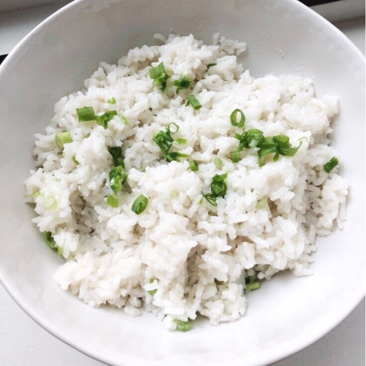 Here’s a really easy recipe for coconut rice that satisfies the craving every time. I like to make a big batch of it and use it to meal prep lunches or dinners. And, you can also replace the chives with fruit for a delicious breakfast or dessert!